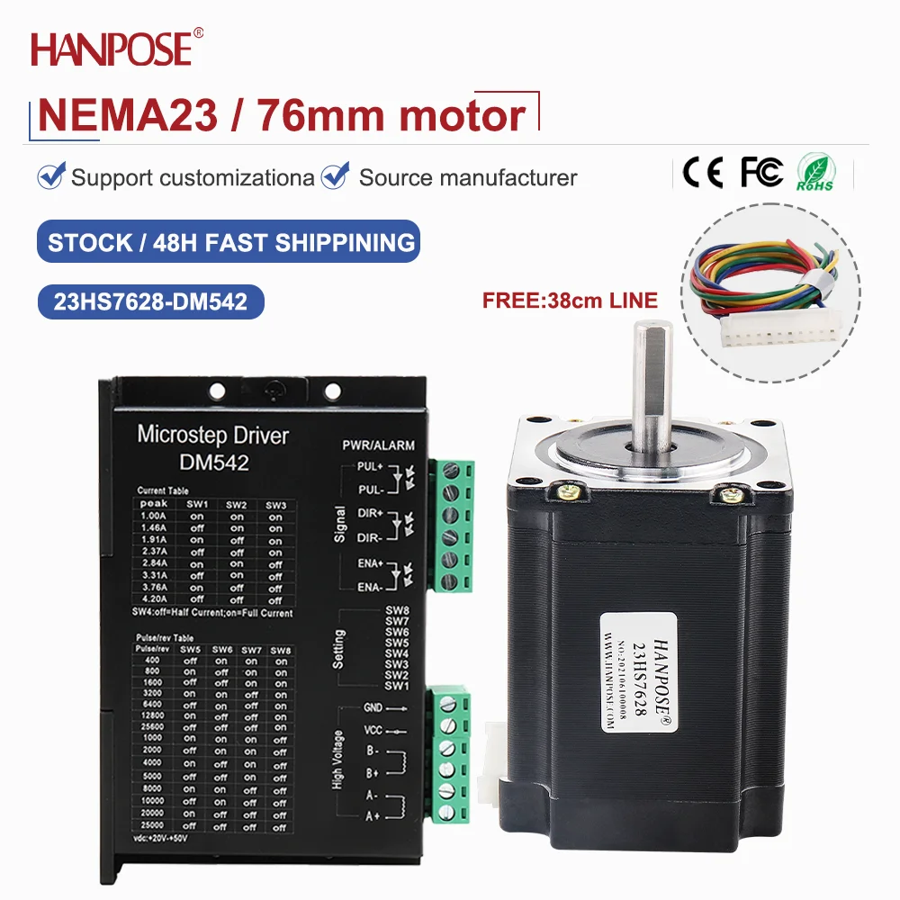 Отзывы о Прецизионный шаговый двигатель для оборудования автоматизации NEMA23 модель 23HS7628 в сочетании с крутящим моментом драйвера DM542 1.89N. м ток 2 8А