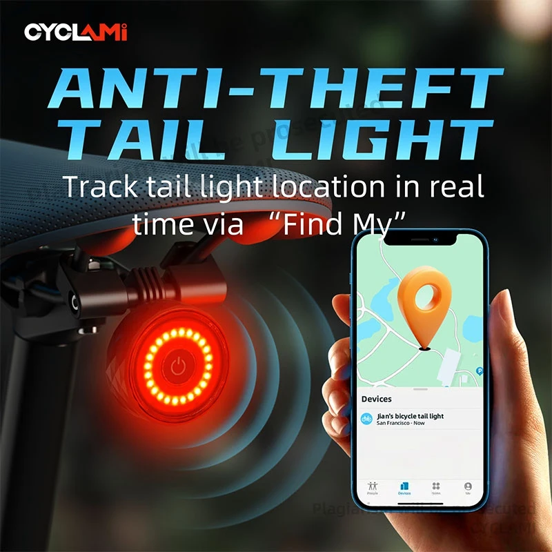 Отзывы о CYCLAMI задний фонарь для велосипеда противоугонный шоссейного MTB IPX64 водонепроницаемый с зарядкой типа C и GPS Find My