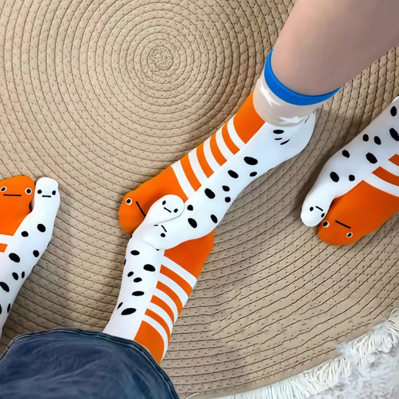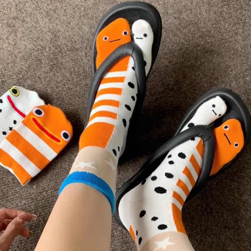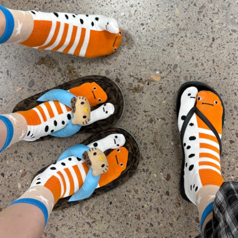 Отзывы о Новинка 2025 года стильные милые забавные носки средней длины с раздельным носком для девочек модные дышащие пар абстрактными углами и аквариума