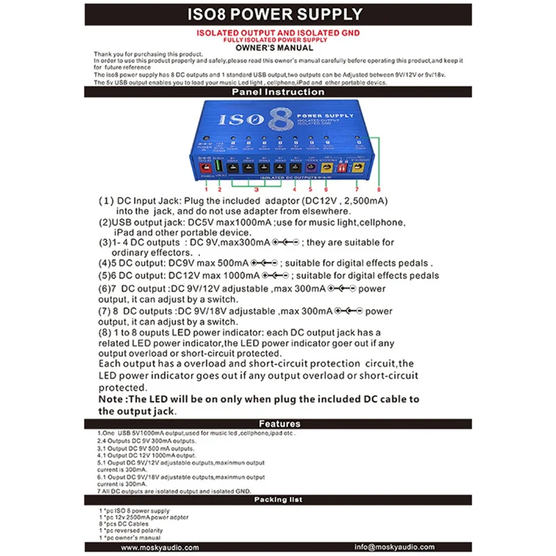 Отзывы о Для источника питания педали для гитары с несколькими эффектами ISO-8 8 изолированных выходных портов постоянного тока (автоматическое обнаружение напряжения) 9 В 12 18 педалей