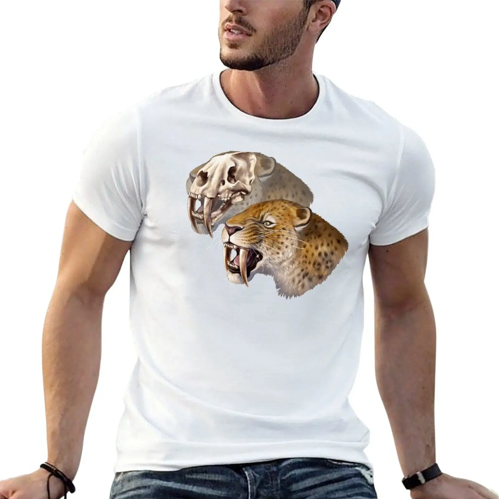 Отзывы о Футболка Sabre-toothed Cat (Smilodon fatalis) мужские футболки для мужчин повседневные забавные хлопковая футболка