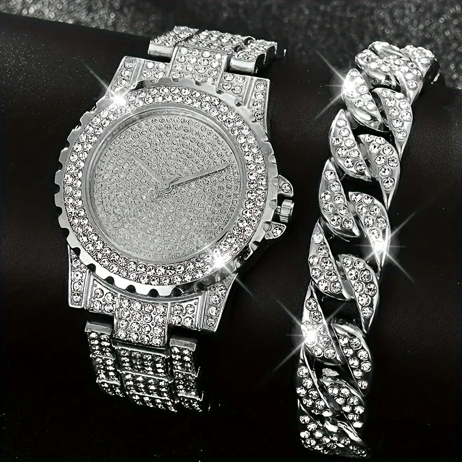 Отзывы о Роскошные мужские кварцевые наручные часы и браслет из 2 предметов круглый циферблат со стразами для отдыха уличные Masculino Relogio