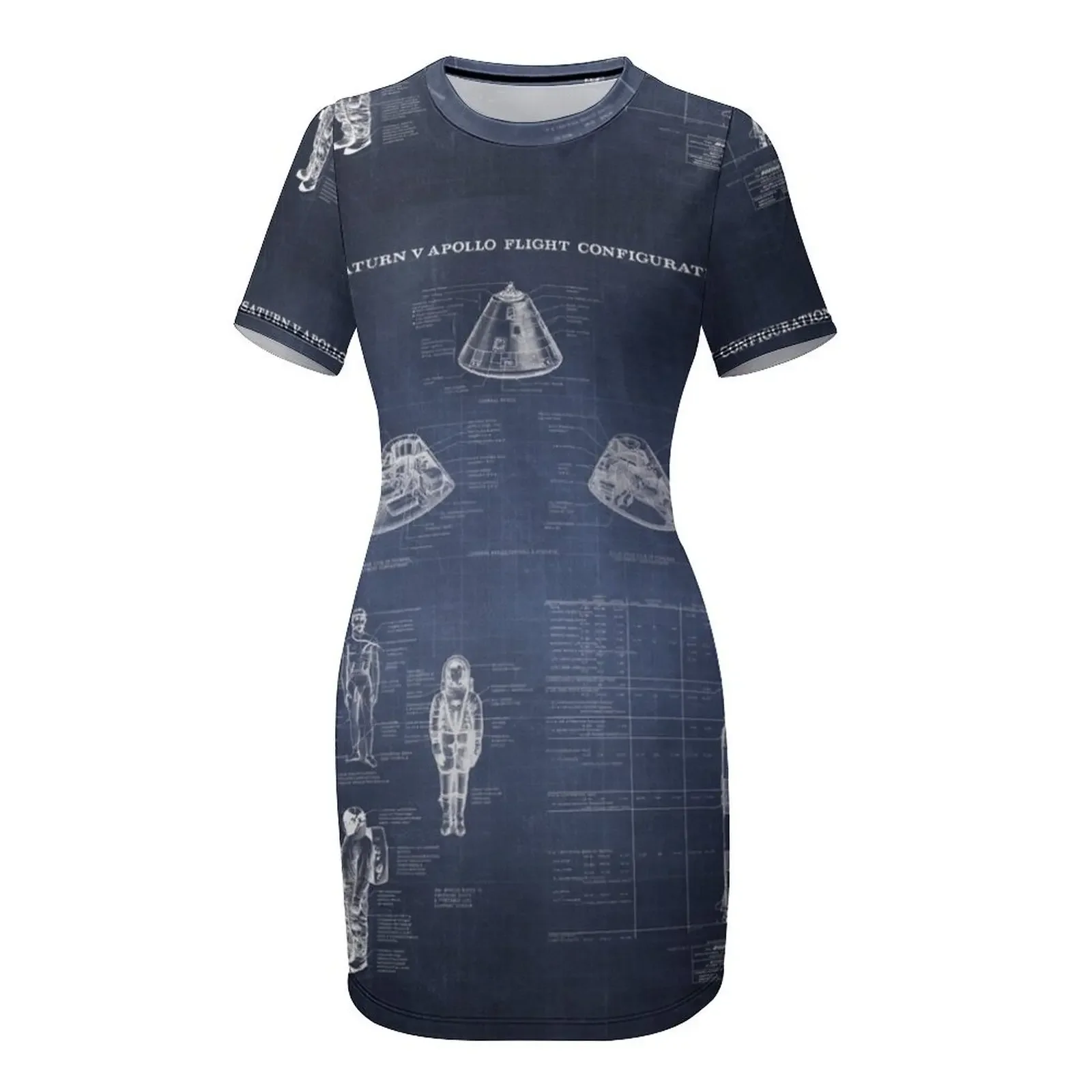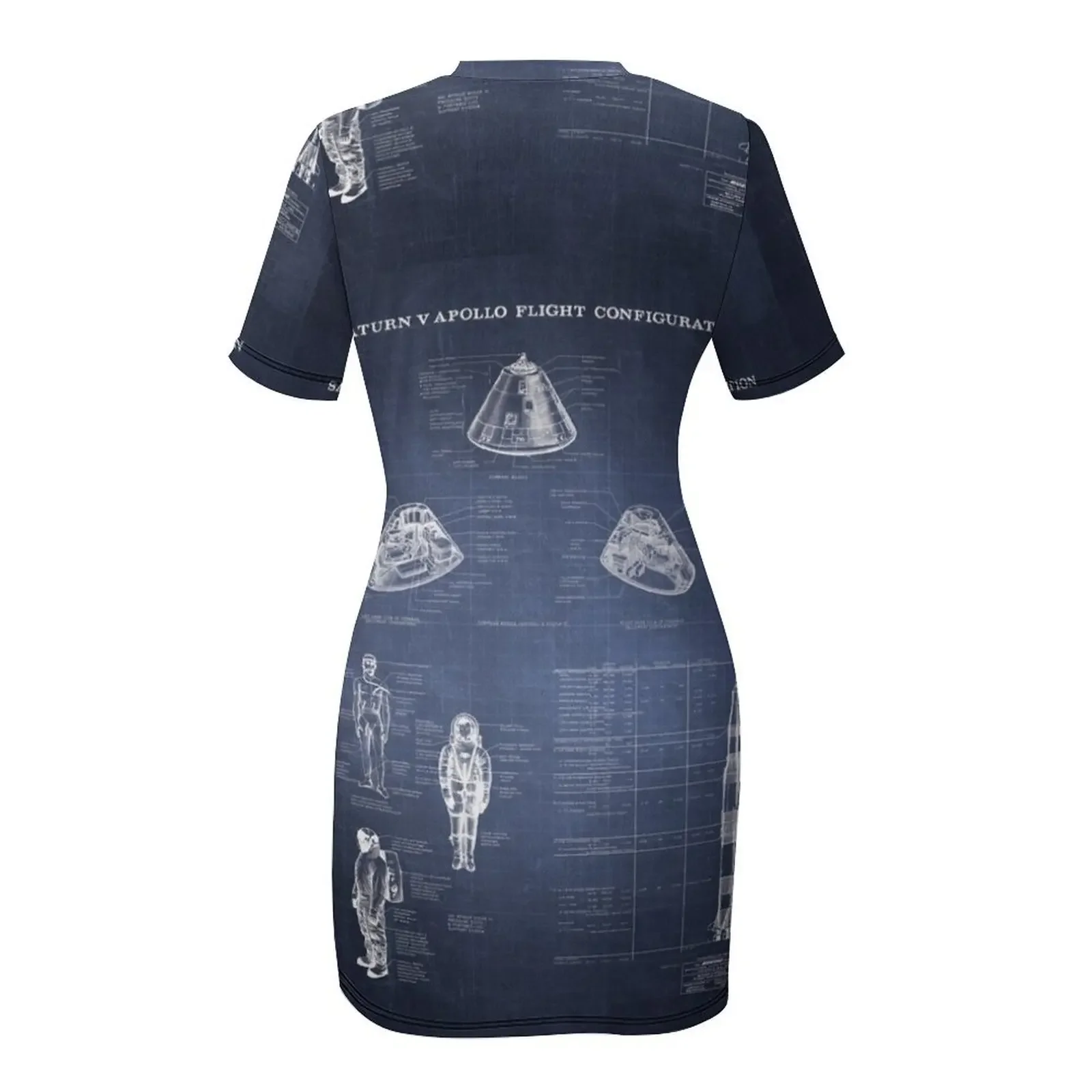 Отзывы о Apollo Saturn V Command Module Blueprint высокого разрешения (темно-синий) Платье с короткими рукавами Платья длинными