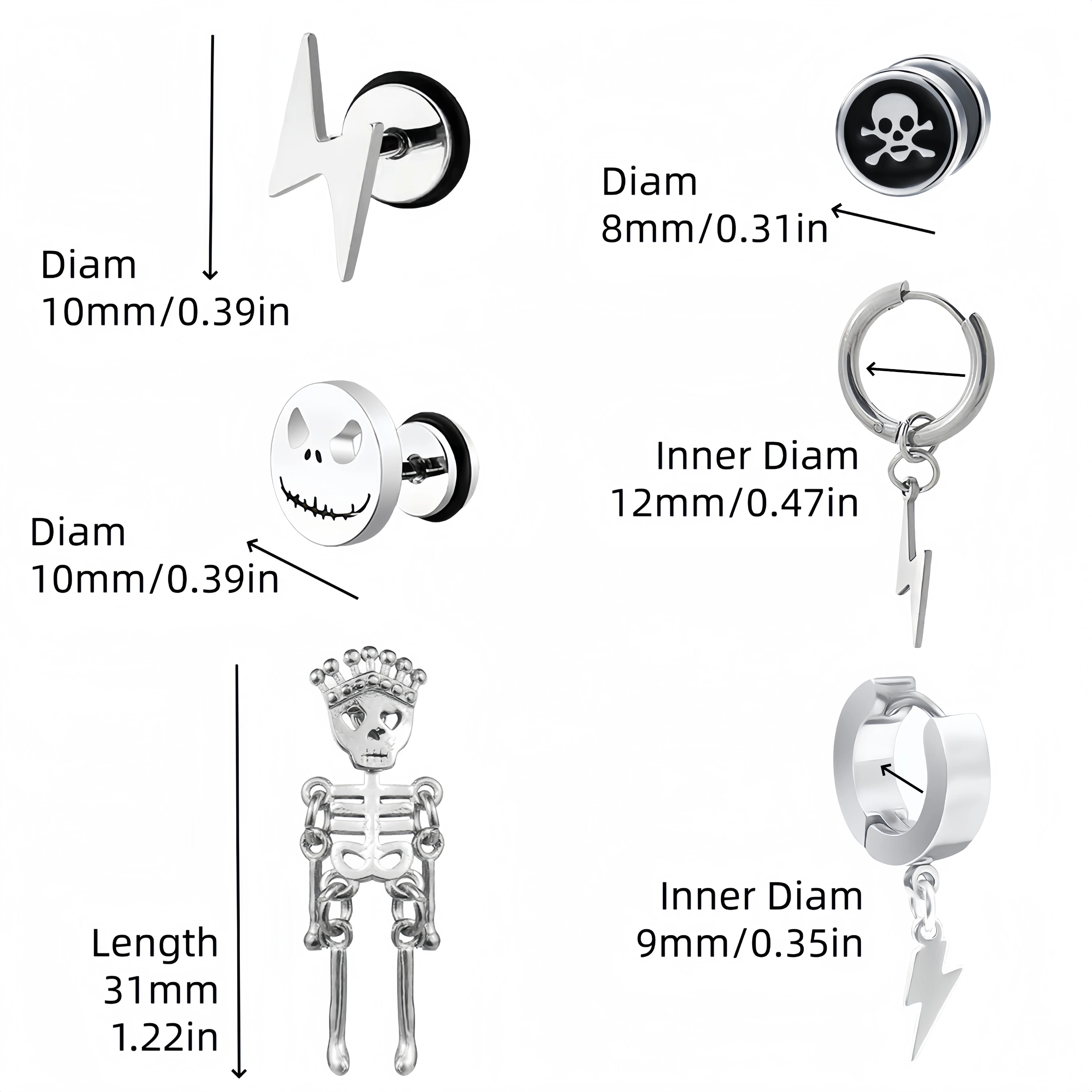 Отзывы о 1-6 пар серег-гвоздиков с черепом в стиле хип-хоп панк готика молния из нержавеющей стали набор для пирсинга черный женщин и мужчин рок ювелирные изделия декор новинка