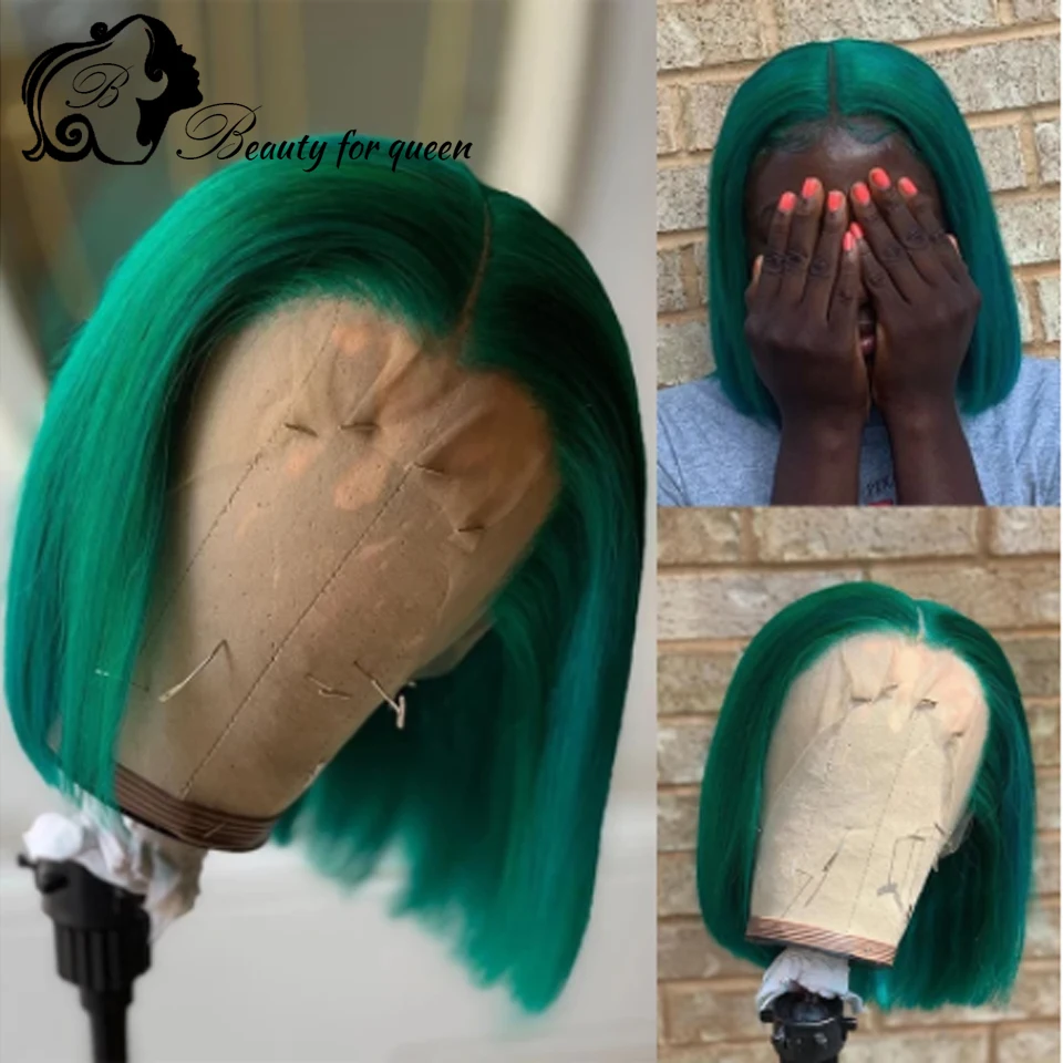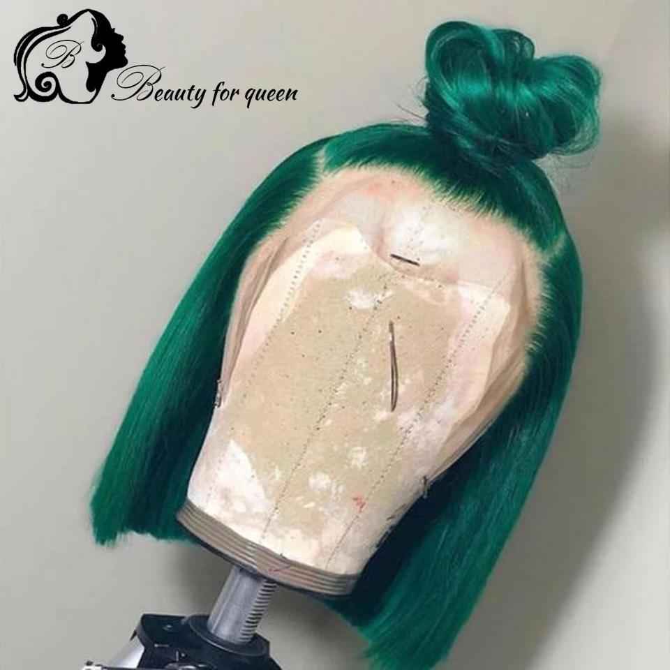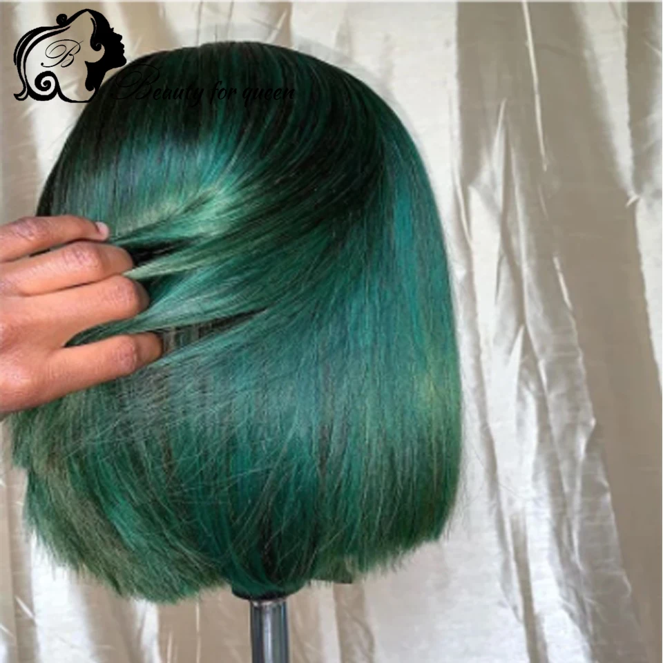 Отзывы о Бразильский парик из человеческих волос Темно-зеленый прямой боб Цвет 180 Плотность 10 дюймов Прозрачный фронта шнурка 13x4 Косплей для женщин