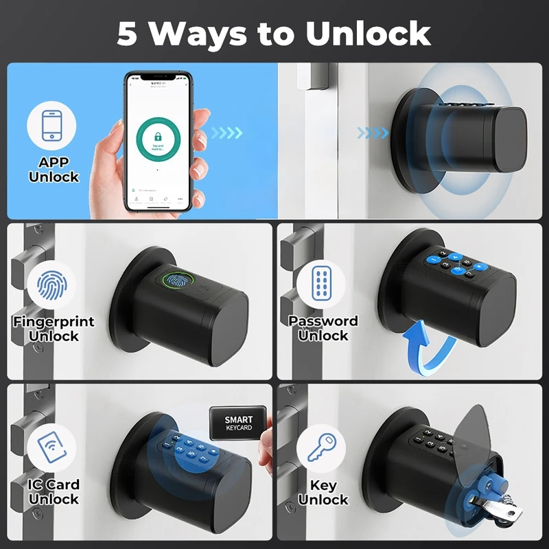 Отзывы о Регулируемый умный электронный дверной замок приложение/пароль/карта/ключ/разблокировка по отпечатку пальца уличный водонепроницаемый цифровой цилиндрический черный