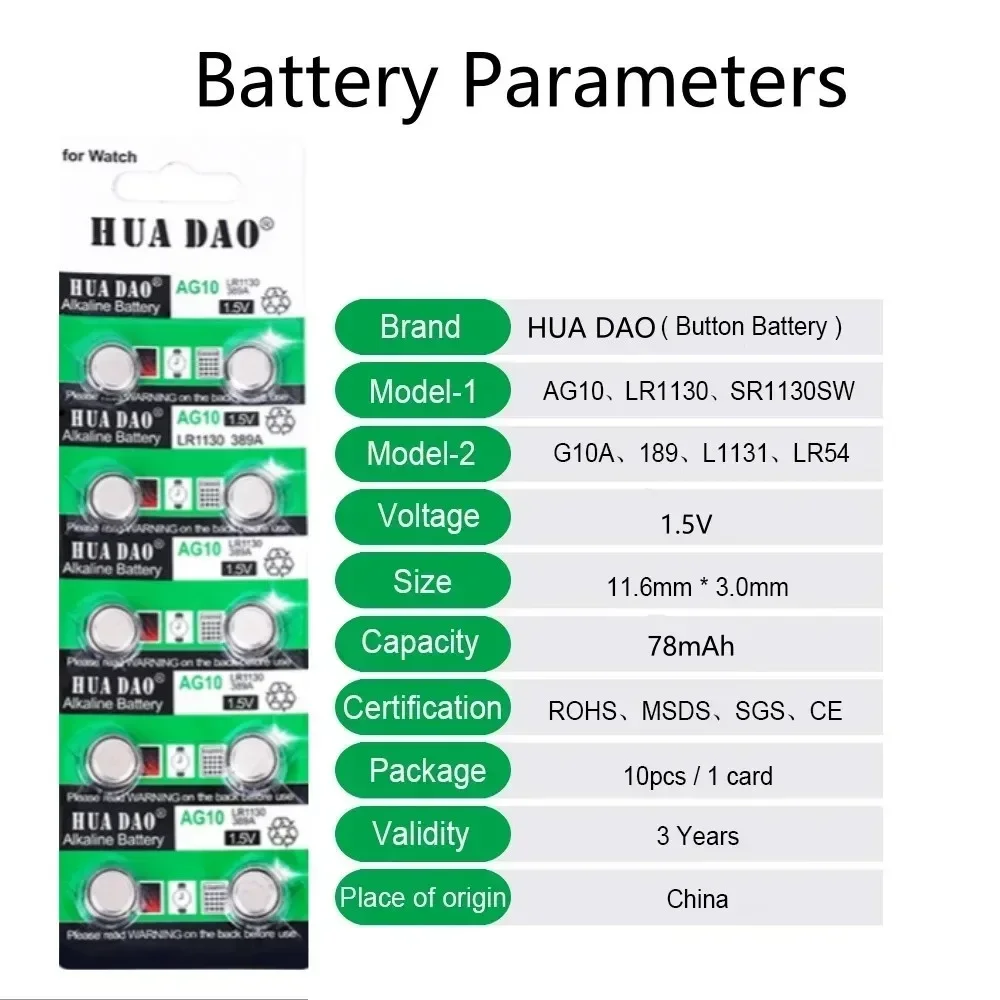 Отзывы о AG10 LR1130 LR54 1 5 В батарейки-таблетки 100 шт. долговечная мощность для часов игрушек брелков светодиодных фонарей доставка по всему миру