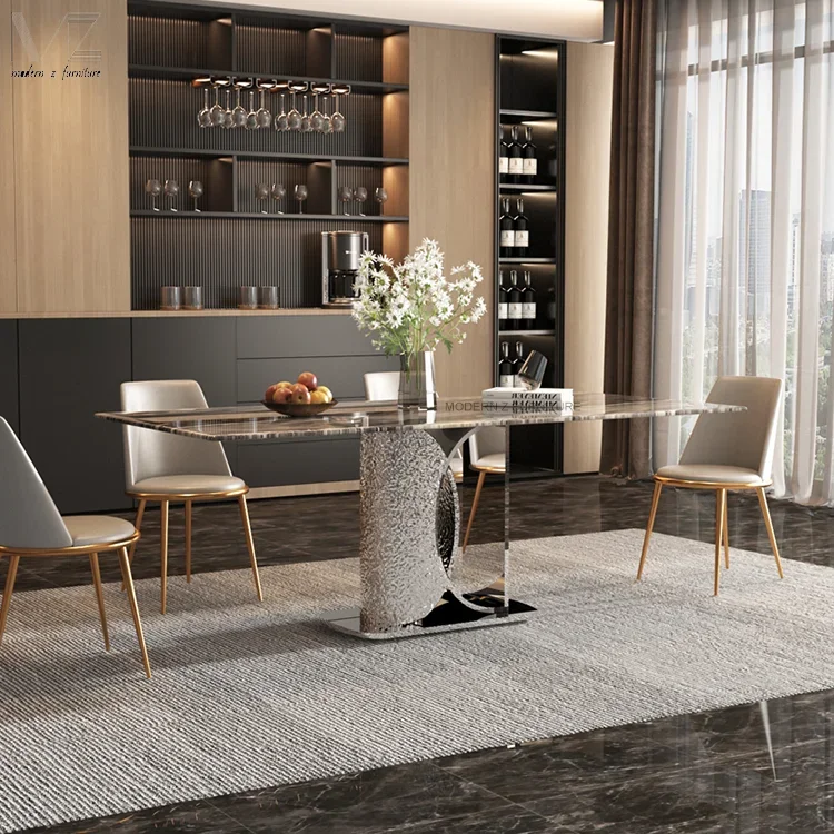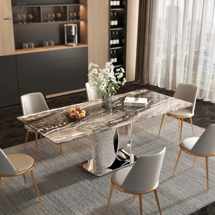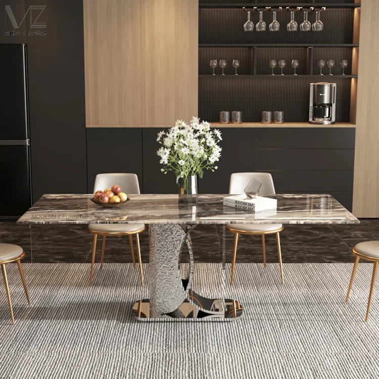 Отзывы о Итальянский полный кухонный обеденный стол на ножках из нержавеющей стали мебель для комнаты 4-местный мрамора и спеченного камня