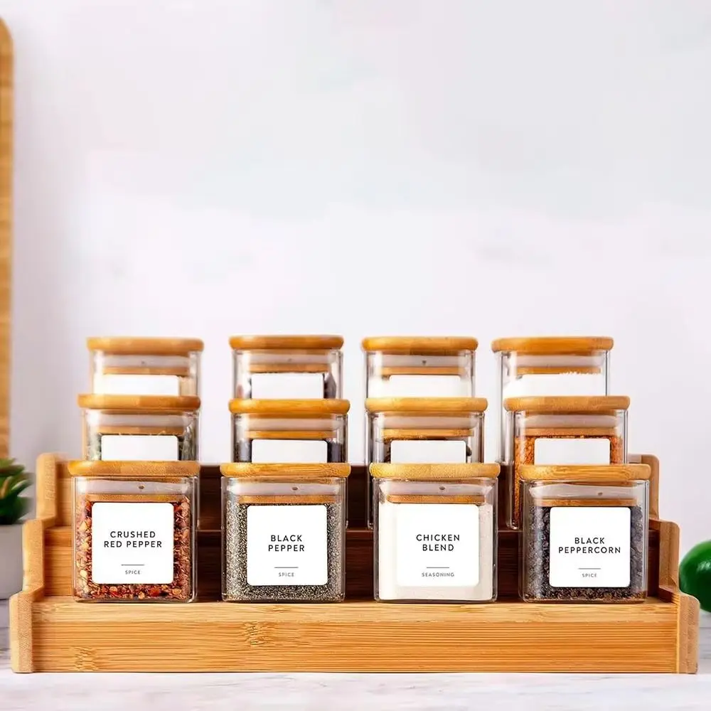Отзывы о Твердая деревянная 3-х уровневая полка для специй Компактный многоуровневый органайзер приправ Дисплей Прочная банка Набор хранения