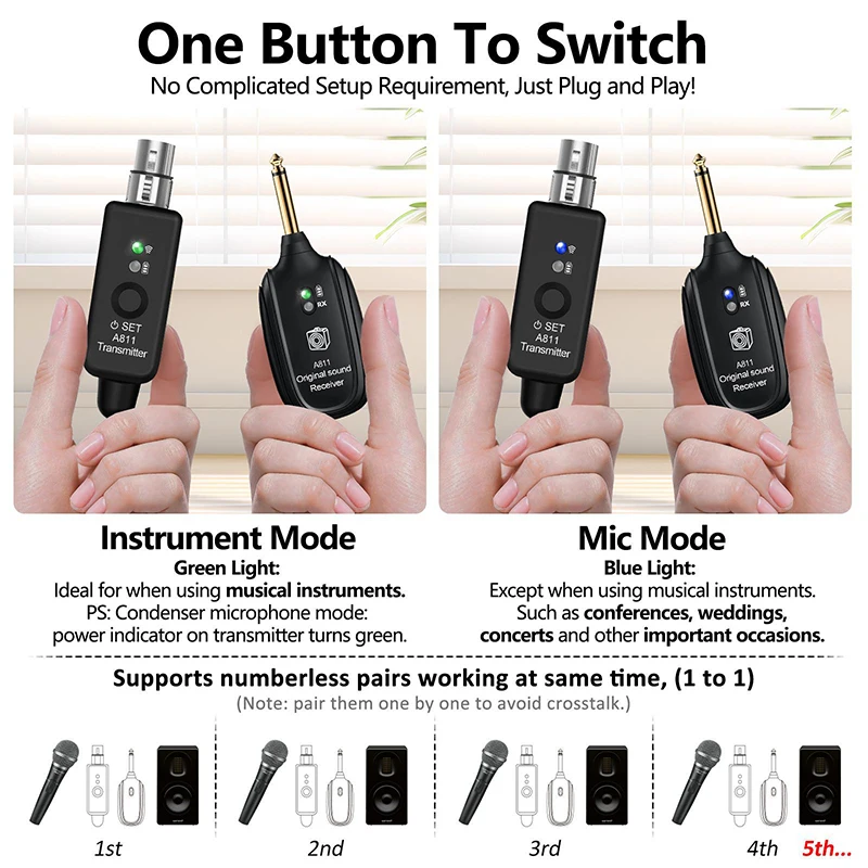 Отзывы о A811 Микрофон Беспроводная передача 2 4G Передатчик Приемник 48 В Емкостный микрофонный передатчик для живого выступления