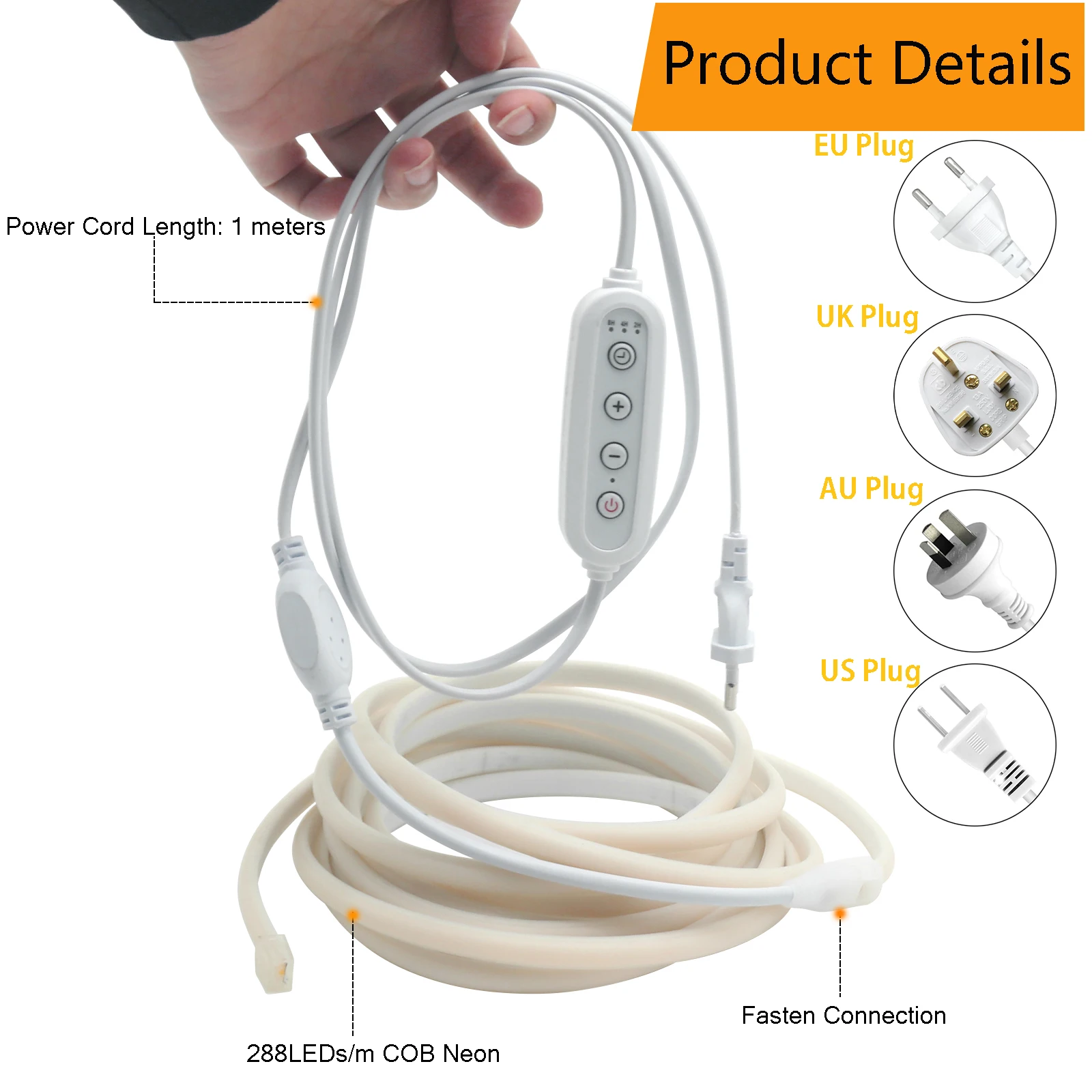 Отзывы о 110 В 220 с регулируемой яркостью COB светодиодная неоновая лента мощность ЕС США AU UK вилка переключателем/диммером/таймером водонепроницаемая 288 светодиодов/м