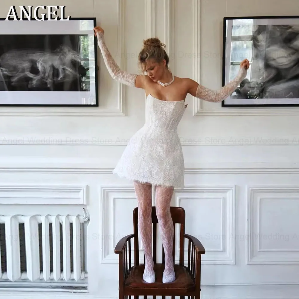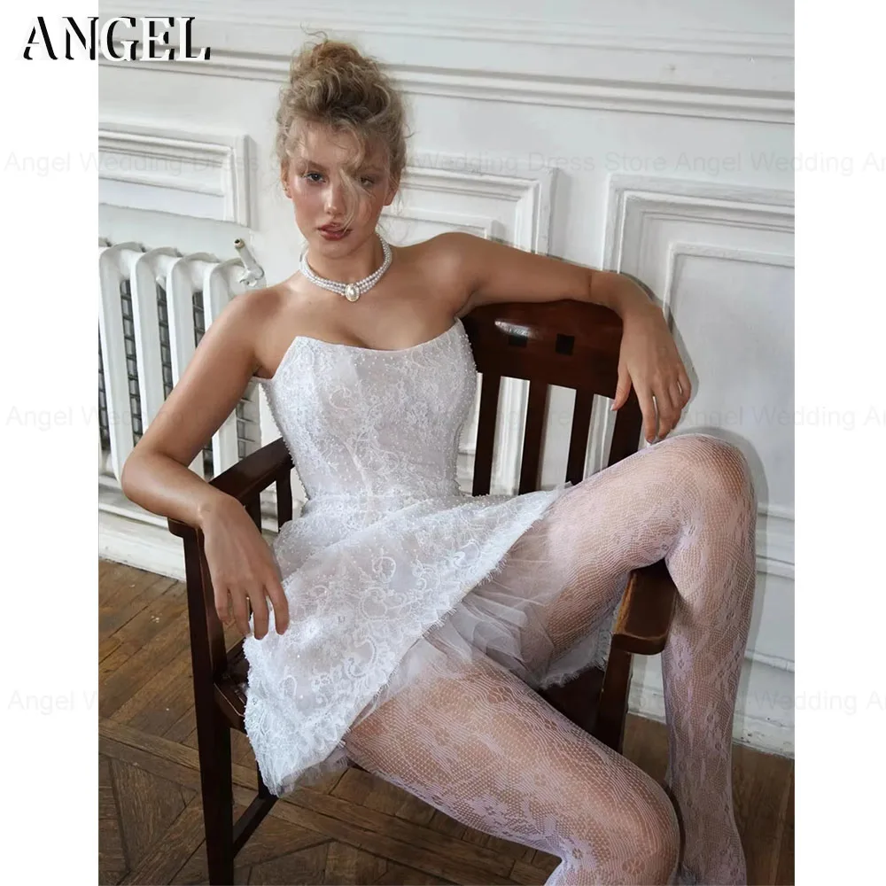 Отзывы о Свадебное платье ANGEL 2026: индивидуальный пошив колонный силуэт блестки кружево мини без бретелек на молнии сзади рукавов. Abito da sposa