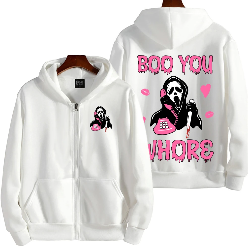 Отзывы о Мужская толстовка на молнии с мультяшным аниме-принтом Ghostface новинка 2026 года повседневная женская весенне-осенняя милая парная куртка-пальто