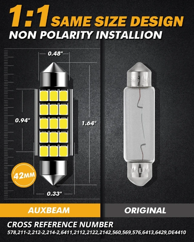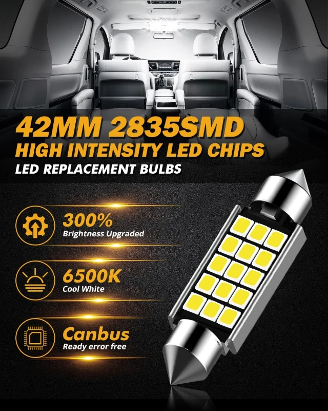 Отзывы о 1 пара светодиодных ламп для салона/плафона/подсветки карты/подсветки номерного знака 41 мм 578 211-2 212-2 214-2 61 дюйма 2 7 Вт 500 лм 6500K