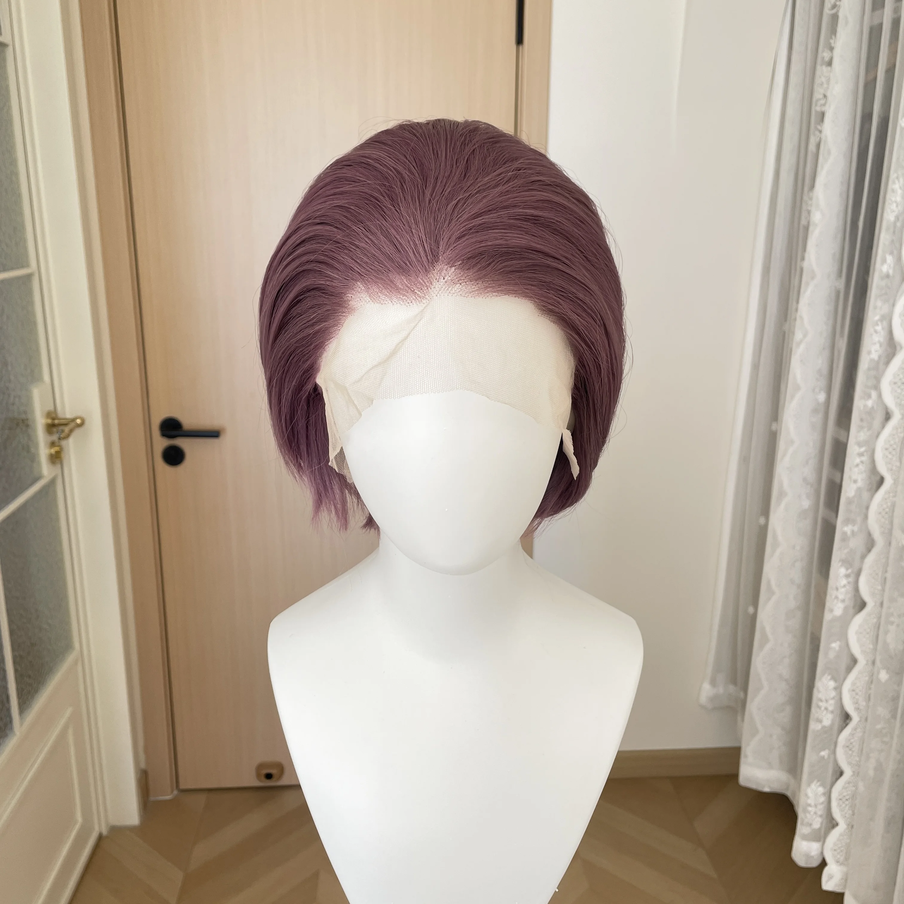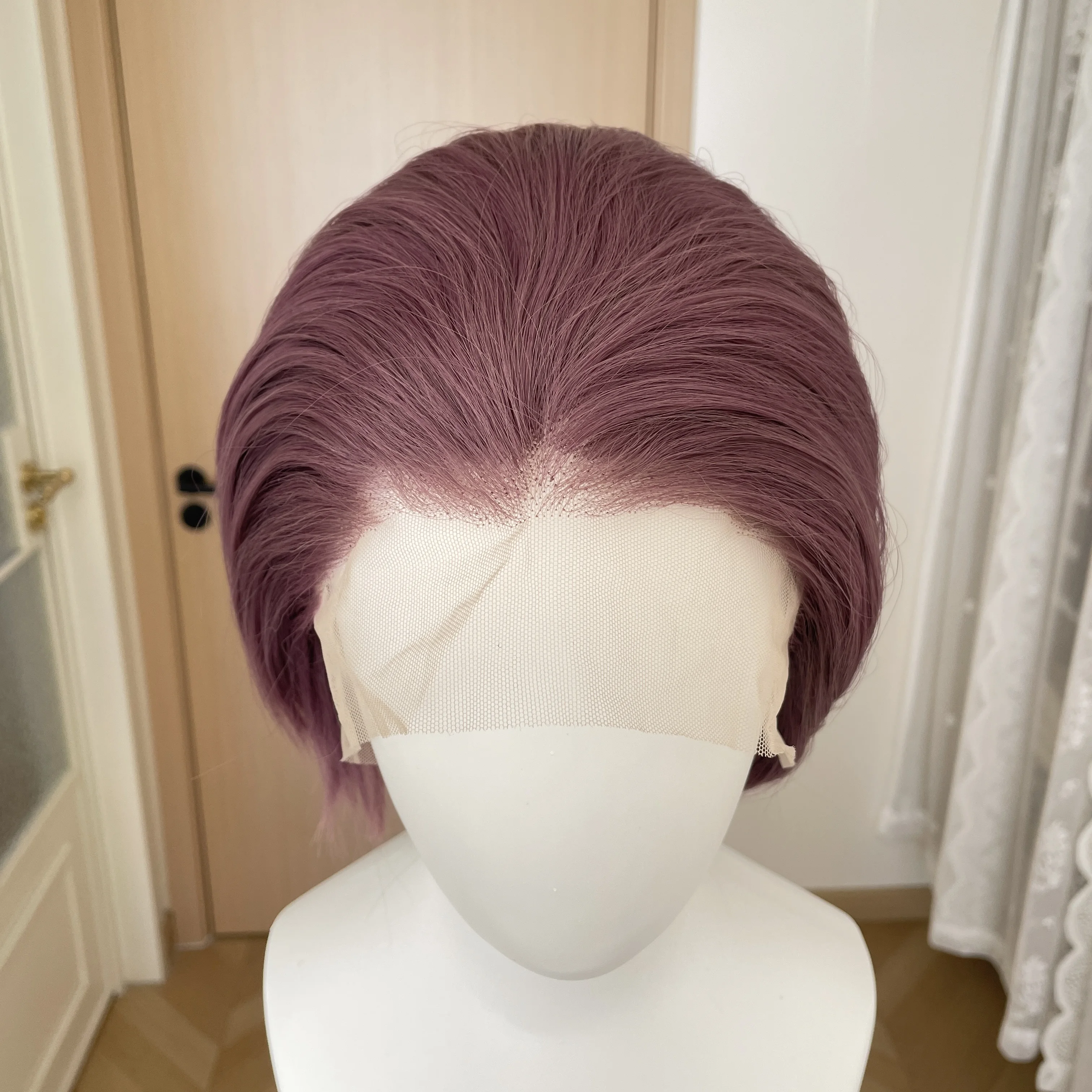 Отзывы о Синтетические парики-каре короткой фиолетовой длины для женщин парики косплея мужчин безклеевые с кружевной передней частью 13x4 парики-пикси полуручной работы плотность 150%