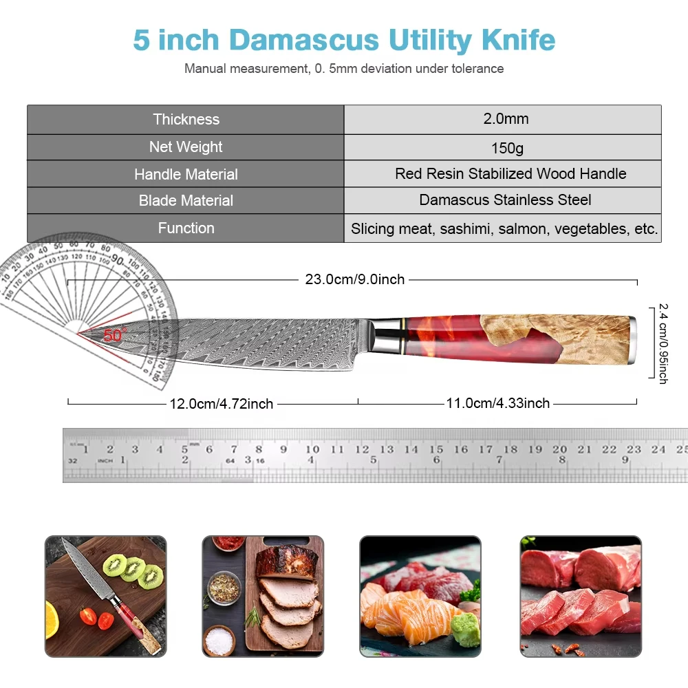 Отзывы о Профессиональный универсальный нож из дамасской стали 5 дюймов острый как бритва кухонный для фруктов стейка в западном стиле эргономичная рукоятка