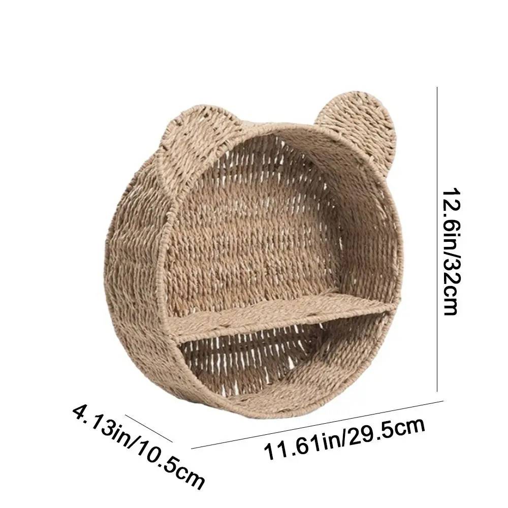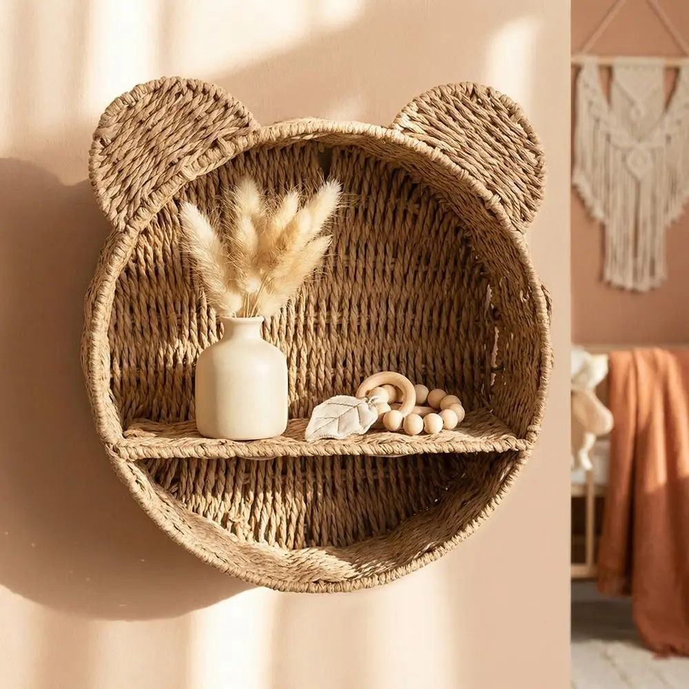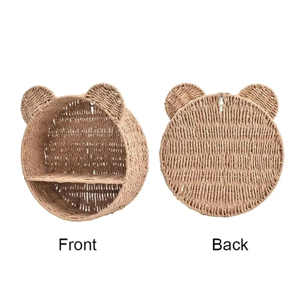 Отзывы о Двухуровневая настенная полка с ушками медведя ручной работы декоративная для растений стеллаж хранения милая имитация ротанговой полки прихожей