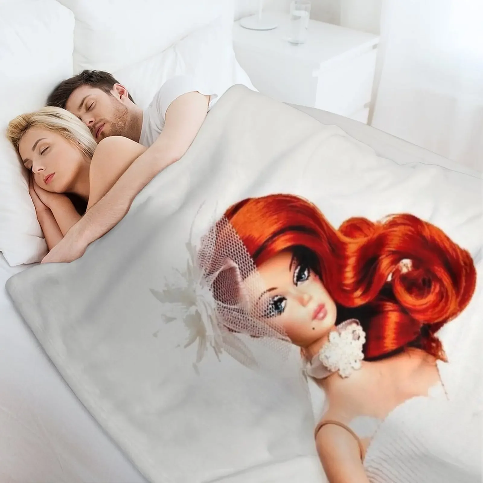 Отзывы о Плед с принтом: красноволосая кукла в винтажном ретро-стиле свадебное платье принт Kwai маска постер
