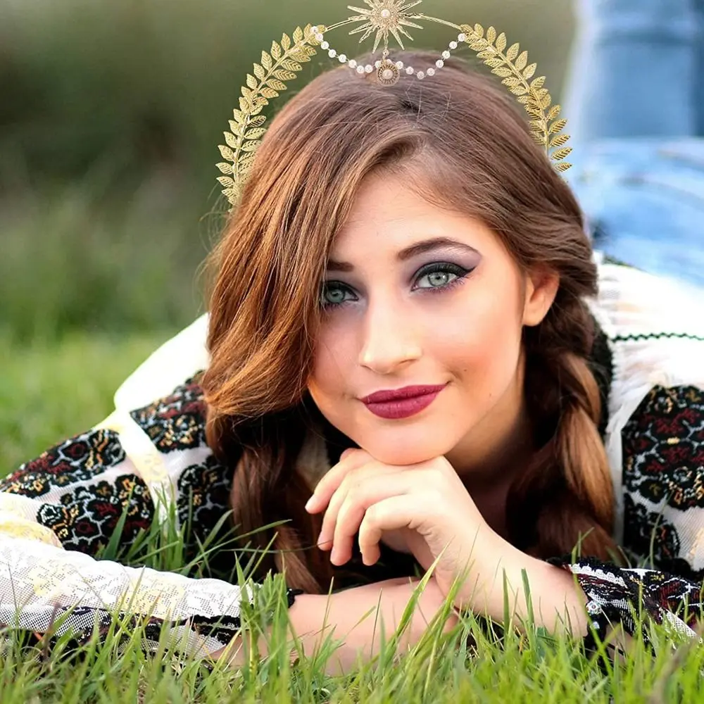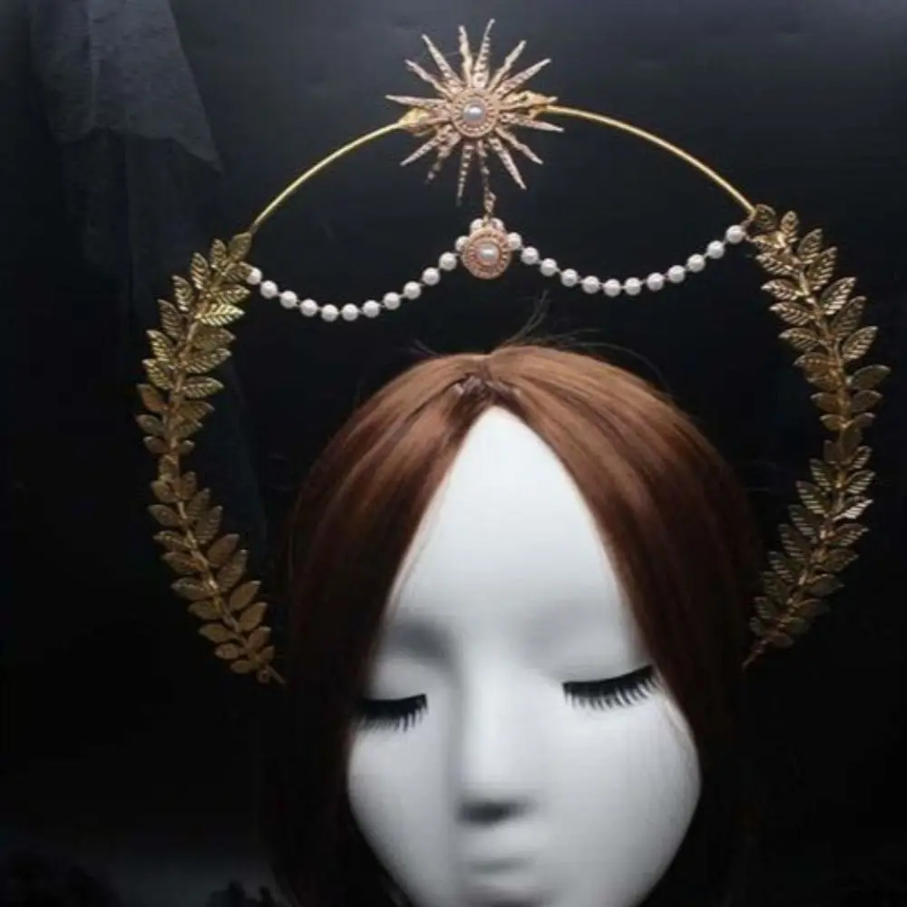 Отзывы о Повязка на голову «Слава Богу Солнца» со звездами и жемчугом обруч для волос косплея аксессуары модных показов тиара костюма Хэллоуин головной убор вечеринки