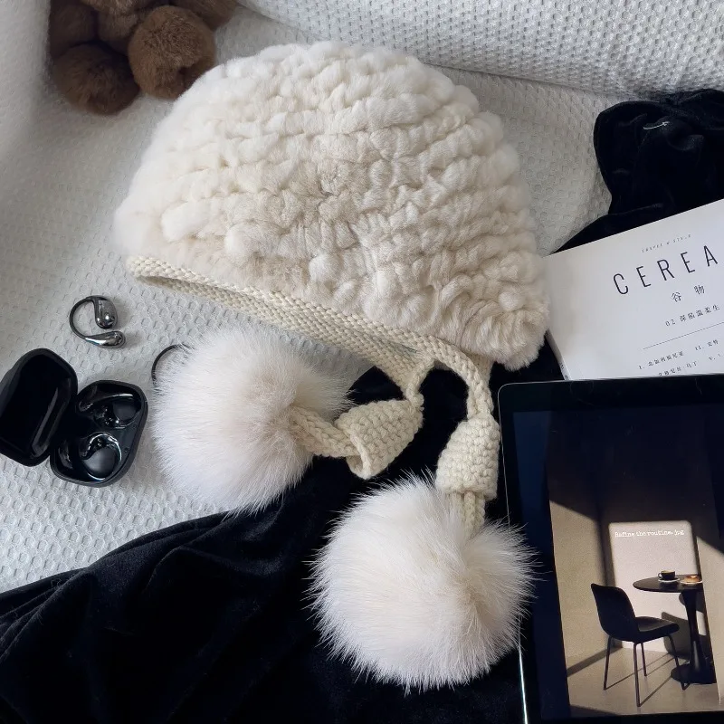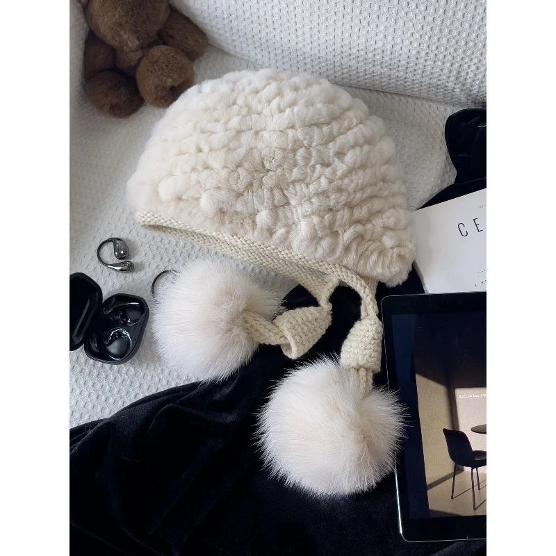 Отзывы о Новая осенне-зимняя вязаная шапка из меха кролика рекс с помпоном лисьего женская теплая меховая шапка-ушанка в стиле Лэй Фэн универсальная для путешествий