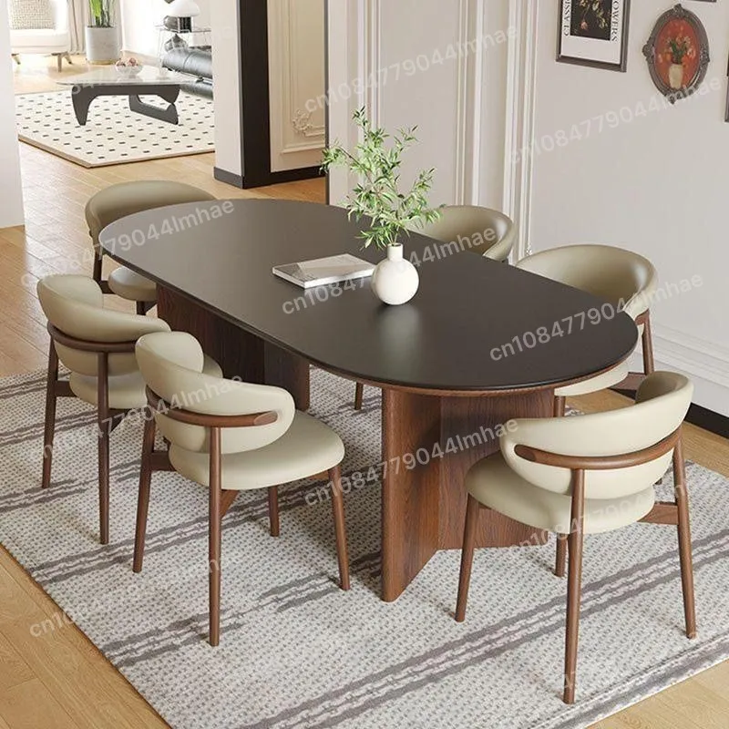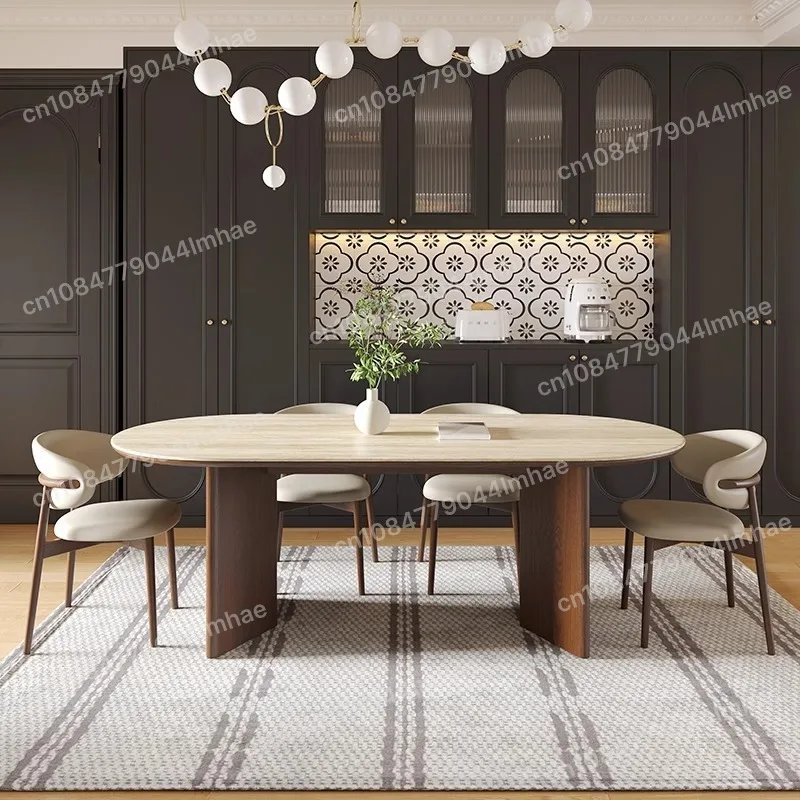 Отзывы о Современный обеденный стол овальной формы из орехового дерева и травертина кухонный с ножками массива 6 стульями для семейных обедов