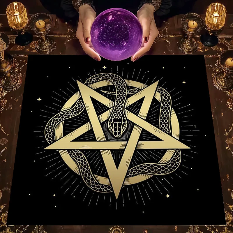 Отзывы о Скатерть для таро с изображением пентаграммы Уробороса 1 шт. – Мистическая алтарная ткань гадания медитации и оккультного декора 90x90 см