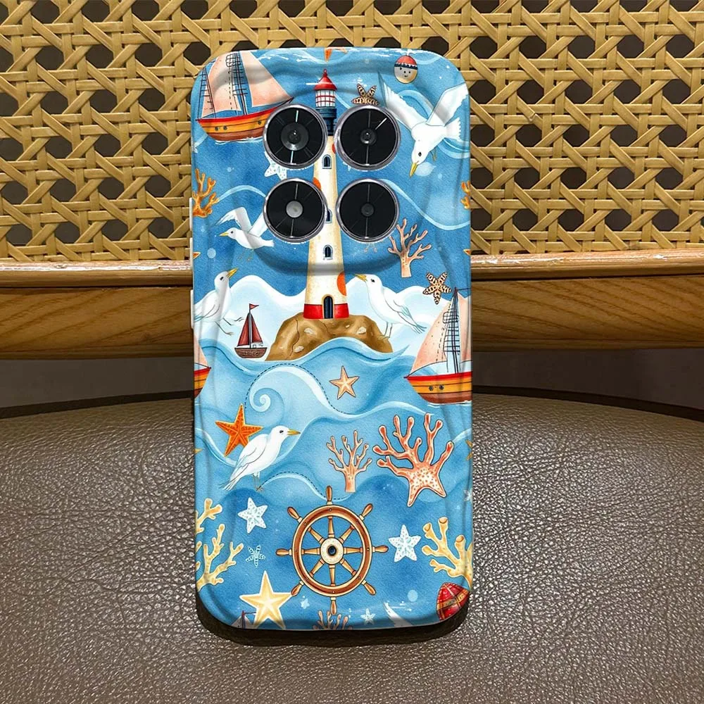 Отзывы о Чехол для телефона Xiaomi Redmi Note 15 14 13 12 11 Pro Plus Feilin с изображением маяка корабля и чайки волнистый эффектом масляной живописи