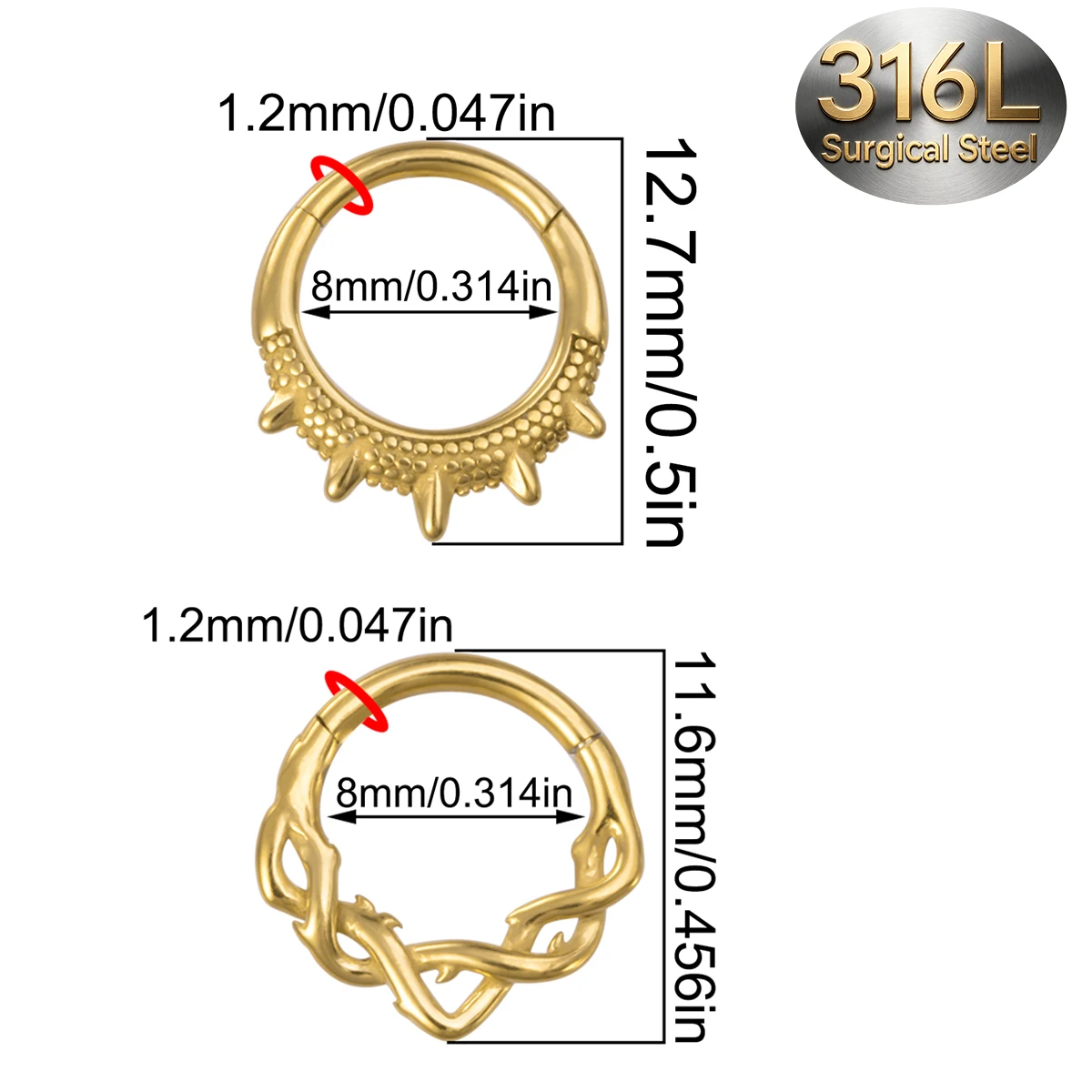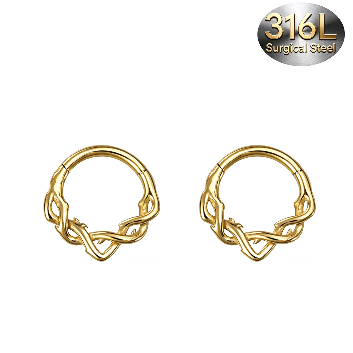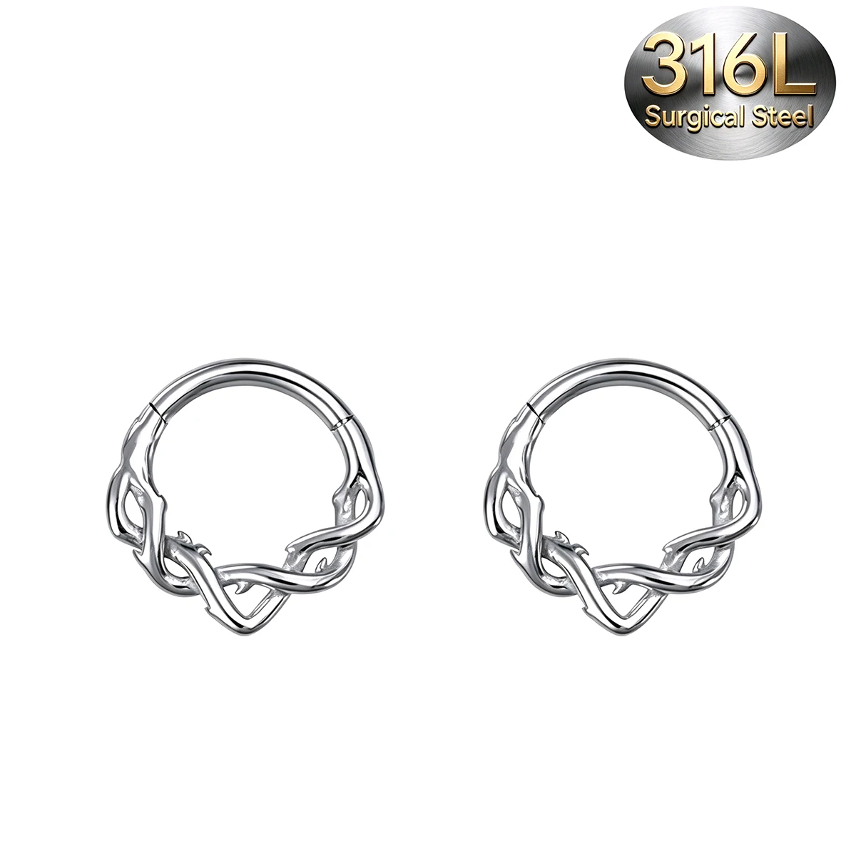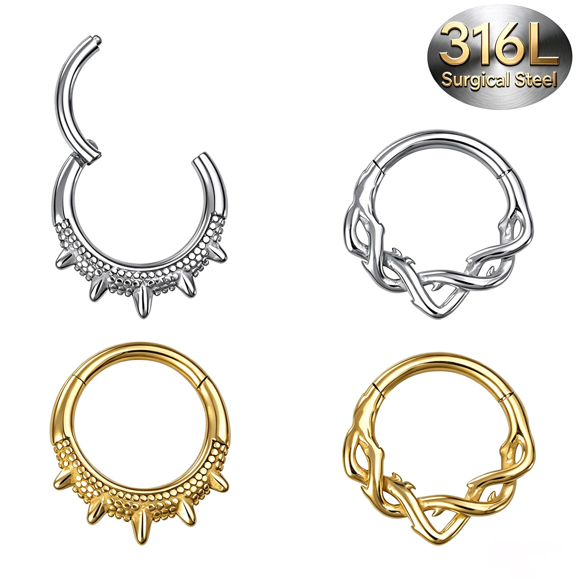 Отзывы о 2 шт. винтажные кольца-клики из хирургической стали 316L с шарнирным механизмом витые шипами для пирсинга септума хеликса трагуса дейтса хряща
