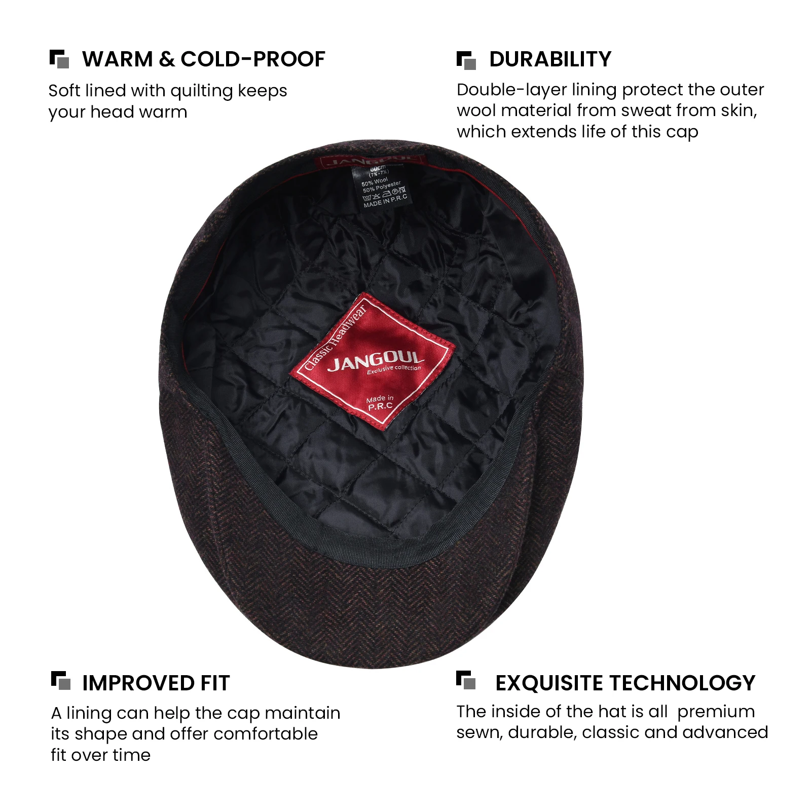 Отзывы о Мужская кепка-газетчица JANGOUL в елочку классическая шерстяная твидовая кепка стиле Бостон/Ирландская теплая уличная для вождения