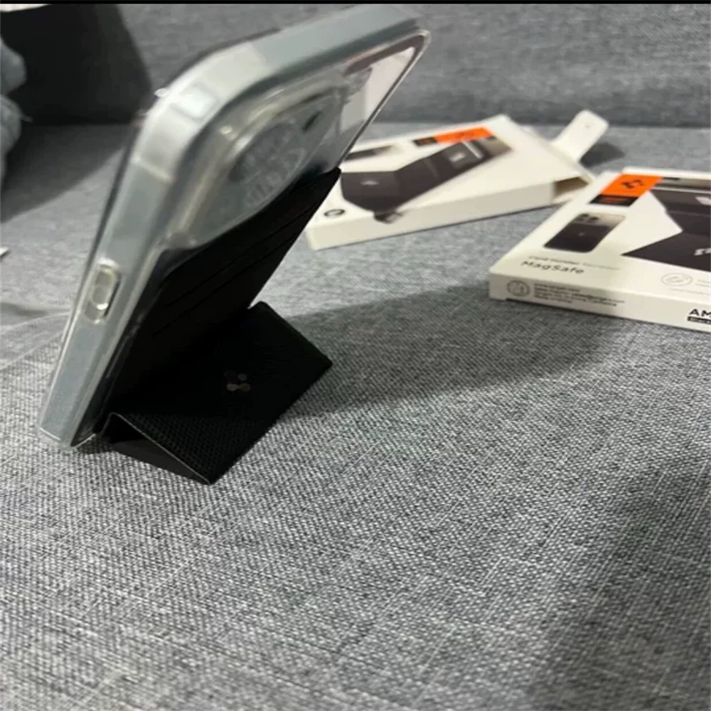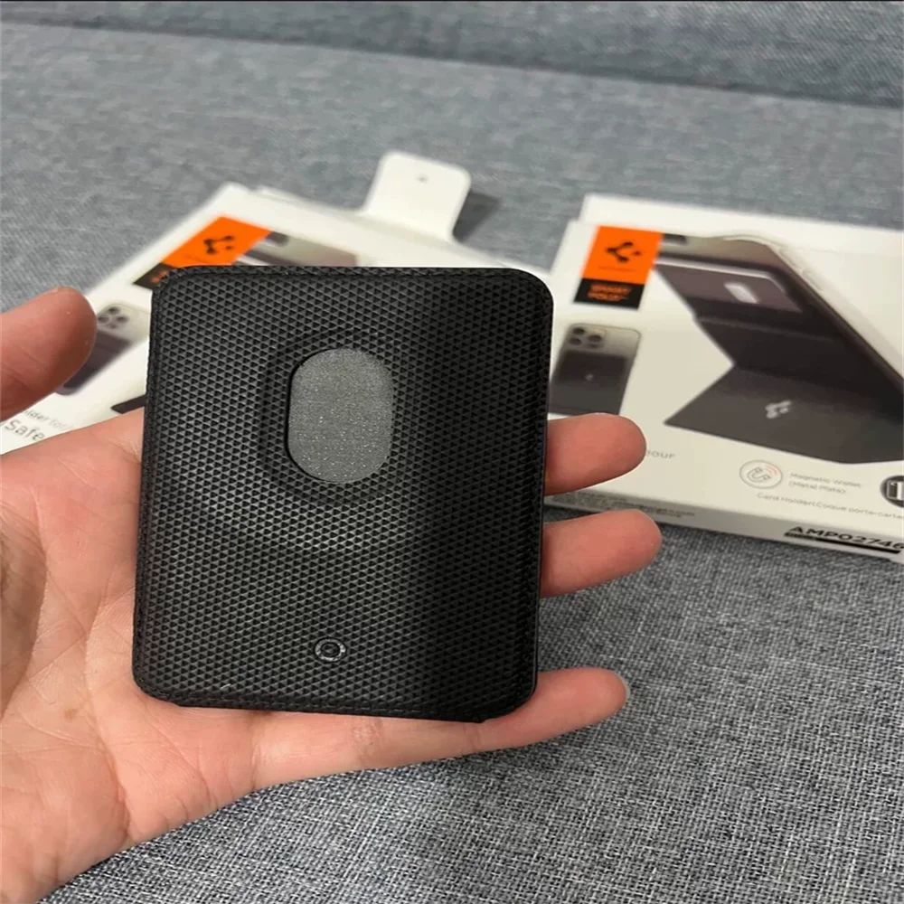 Отзывы о Оригинальный кожаный складной магнитный матовый чехол-кошелек Spigen с держателем для карт Magsafe iPhone 17 16 15 14 13 Pro Max Air