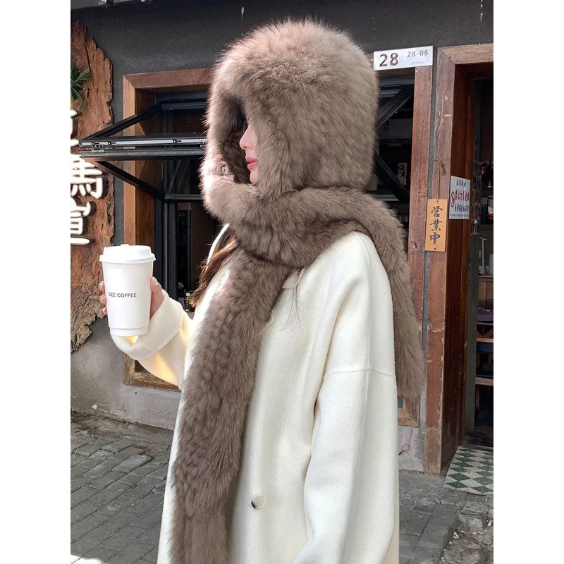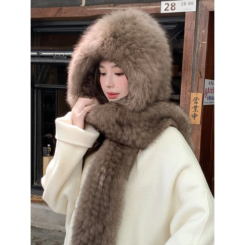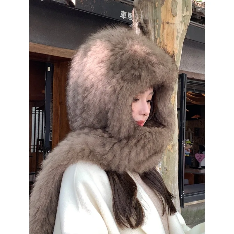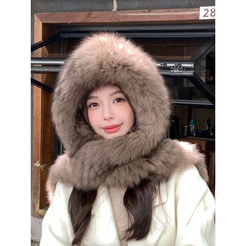 Отзывы о Премиальная шапка из лисьего меха шарф интегрированная зимняя женская осенне-зимняя теплая двусторонняя утолщенная плюшевая с защитой для ушей