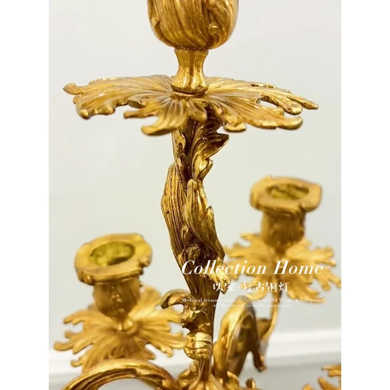 Отзывы о Французский ретро-люксовый декоративный подсвечник из цельной меди европейский стиль для виллы гостиной столовой медное изделие ручной работы декора