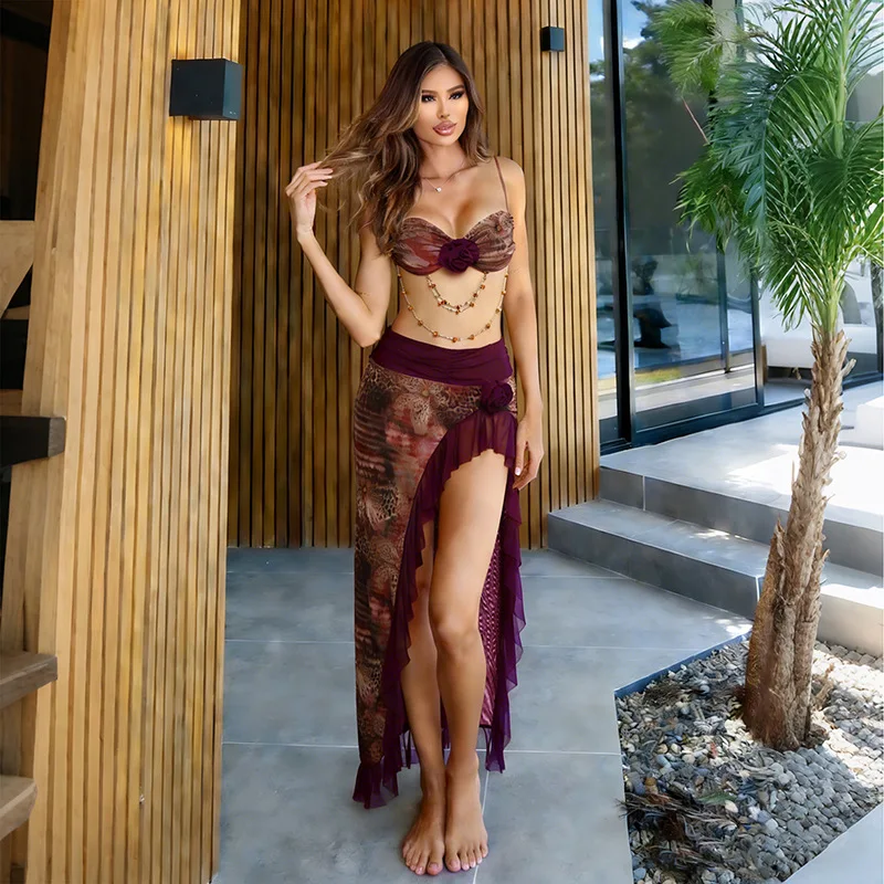 Отзывы о Комплект YUZHEXI: сексуальный топ-бюстгальтер с бисерной цепочкой и пляжное платье асимметричным подолом сетчатая пляжная одежда комплект из двух предметов для женщин