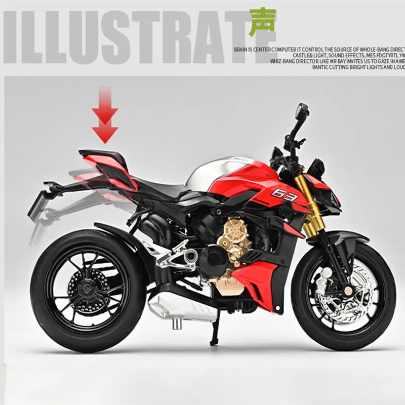 Отзывы о Модель гоночного мотоцикла Streetfighter V4S из сплава масштаб 1:12 литая под давлением с имитацией звука и света игрушка-подарок