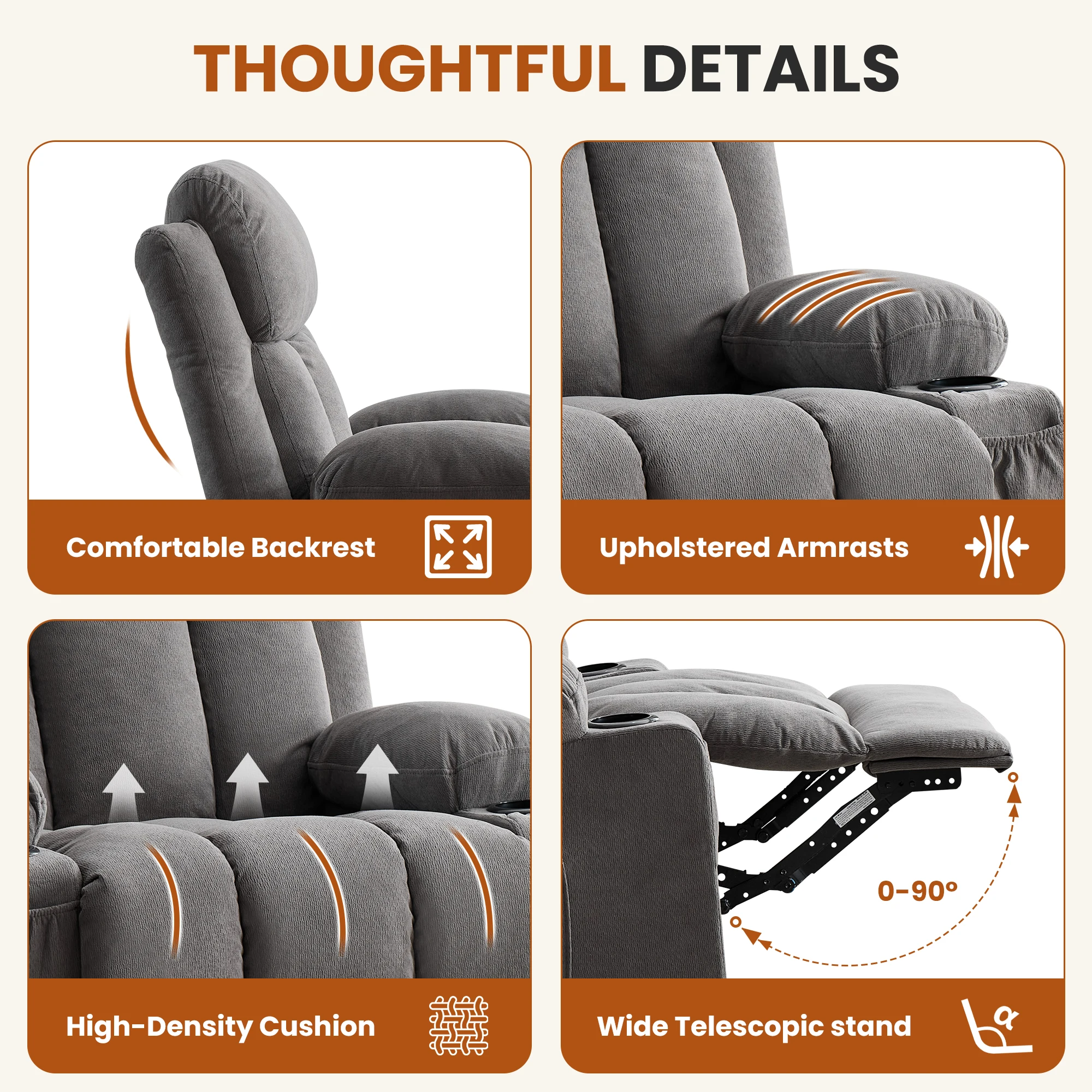 Отзывы о USB-порт для зарядки Airo Fabric Grey 360 ° Кресло-реклайнер с функцией вращения вибрационным массажем подогревом и карманом хранения