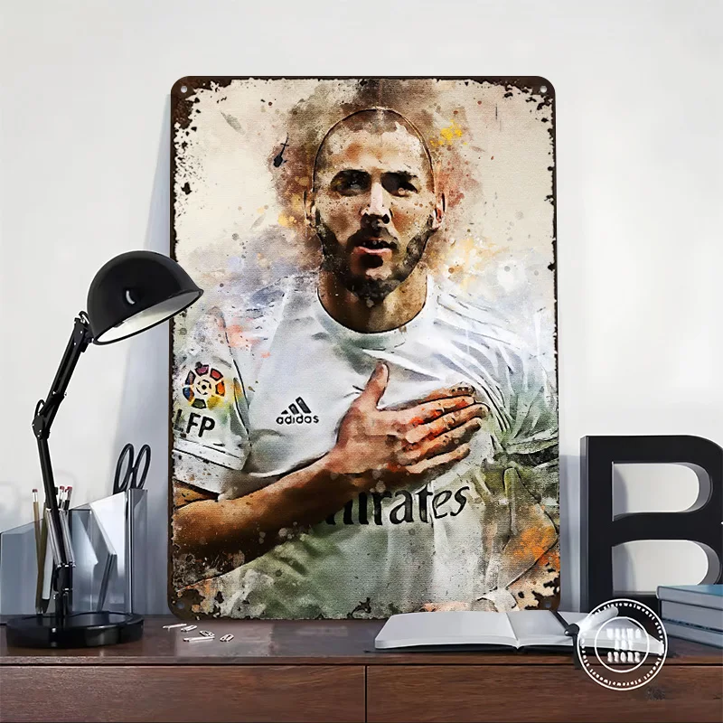 Отзывы о Металлический постер Карима Бензема индивидуальный дизайн ретро-винтажные металлические таблички для фанатов декор игровой комнаты гаража