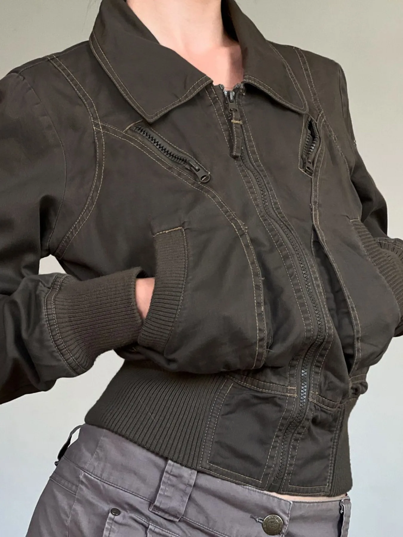 Отзывы о Летняя мужская одежда: приталенная рабочая куртка на молнии для мужчин уличная мода винтажный стиль полиэстер длинный рукав с функциональными карманами
